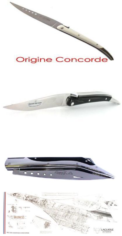 Couteau Laguiole de poche et pliant fabriqué à base de pièces issues du célèbre avion supersonique CONCORDE.